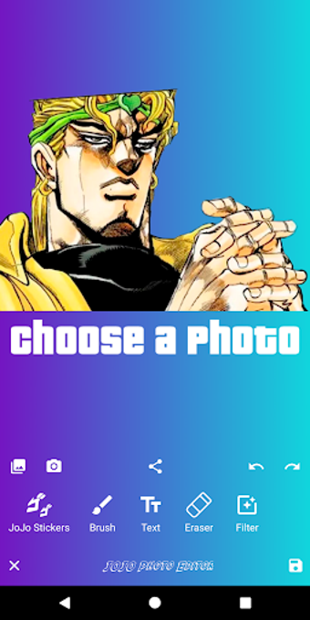O JOJO Photo Editor é um aplicativo gratuito disponível para Android que permite aos usuários editar suas fotos de maneira divertida, utilizando elementos inspirados no anime JoJo. Com uma variedade de efeitos, adesivos e kanjis, o aplicativo oferece ferramentas criativas para personalizar imagens e dar um toque único a cada uma delas. A interface é intuitiva, permitindo que tanto iniciantes quanto usuários mais experientes possam aproveitar suas funcionalidades sem dificuldades.